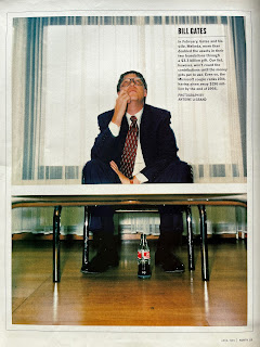 Well, my interest in this photo is really the contour glass bottle. Clearly it's a Coke bottle partially full (or empty) with a paper label. It's definitely not an American bottle, likely an European one. Was the bottle just a prop or did it belong to Mr. Gates (or Mr. Le Grand)?